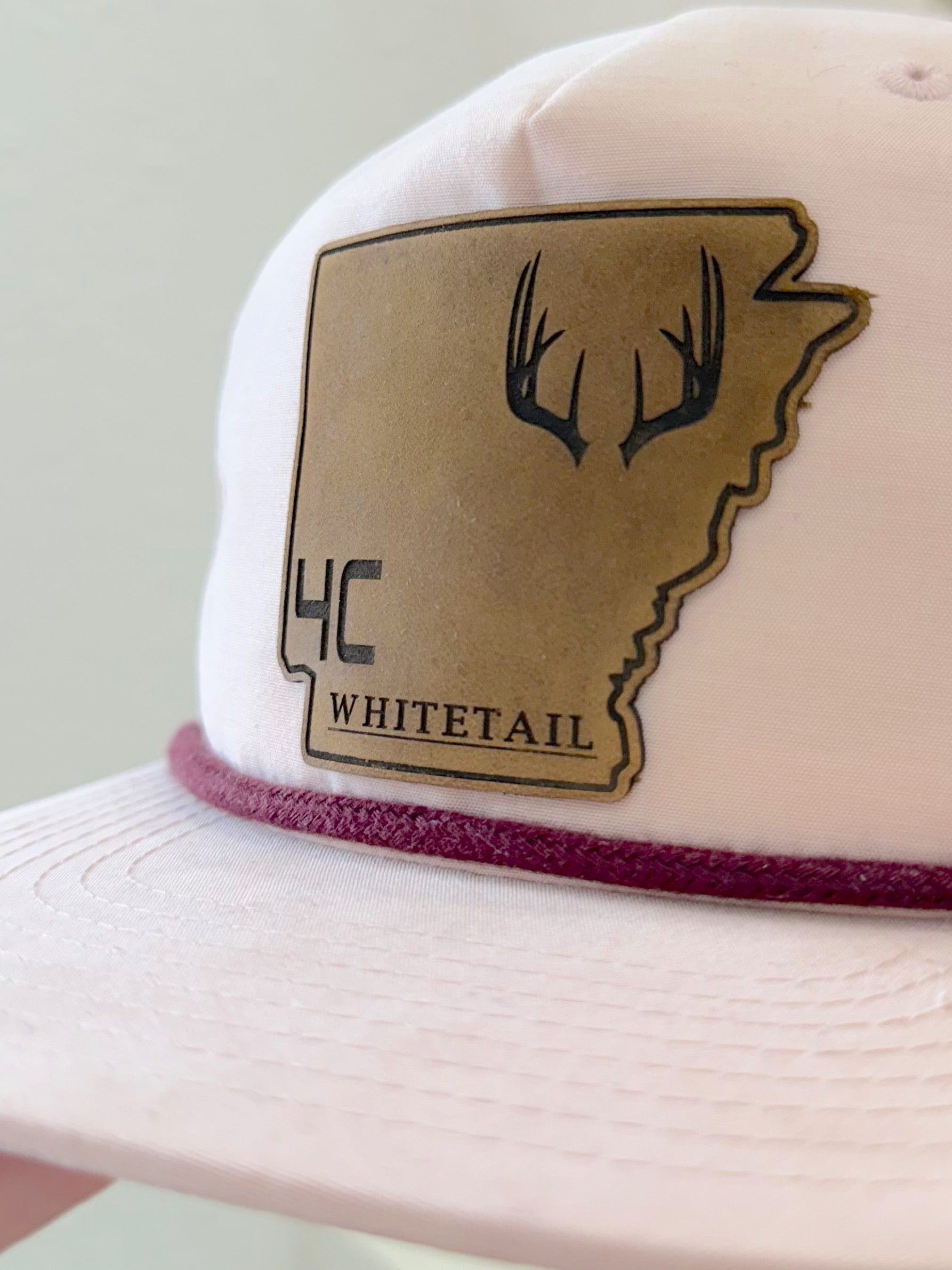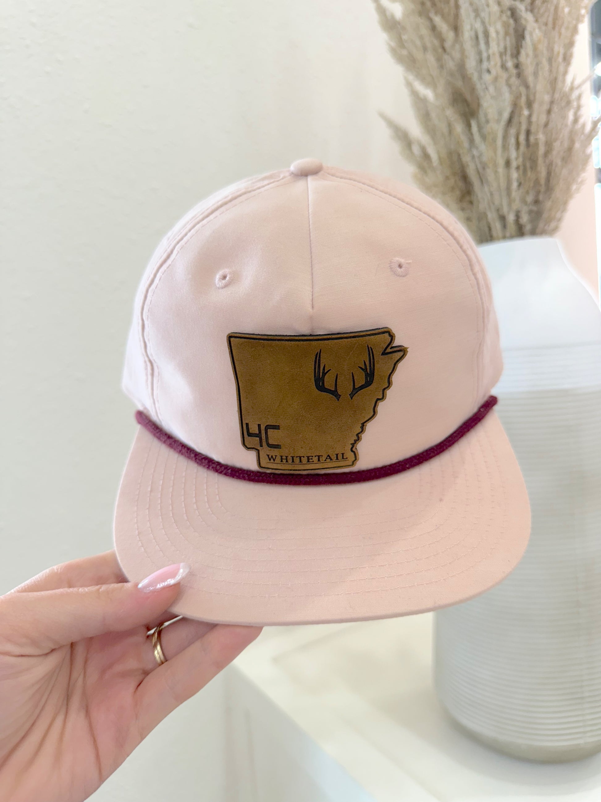 Pale Peach/ Maroon Rope Richardson 256 Hat with 4C Whitetail Logo Arkansas Shaped Leather Patch