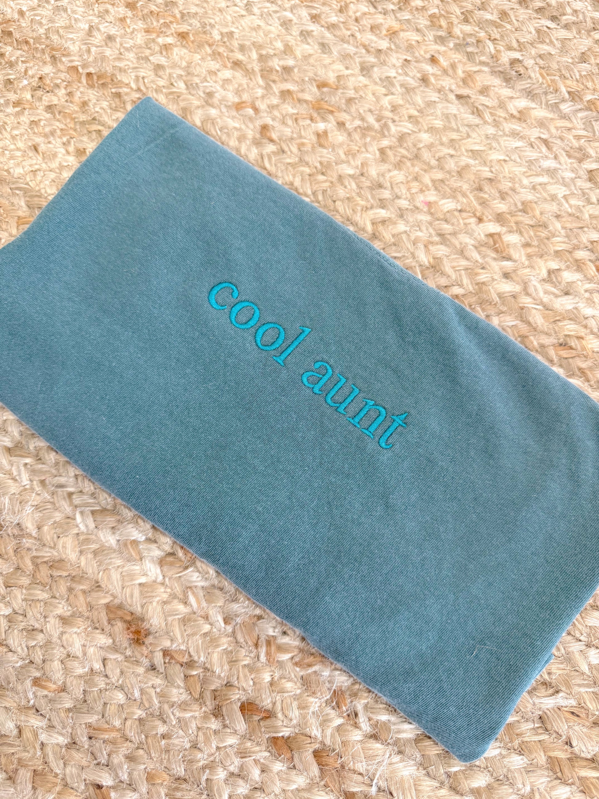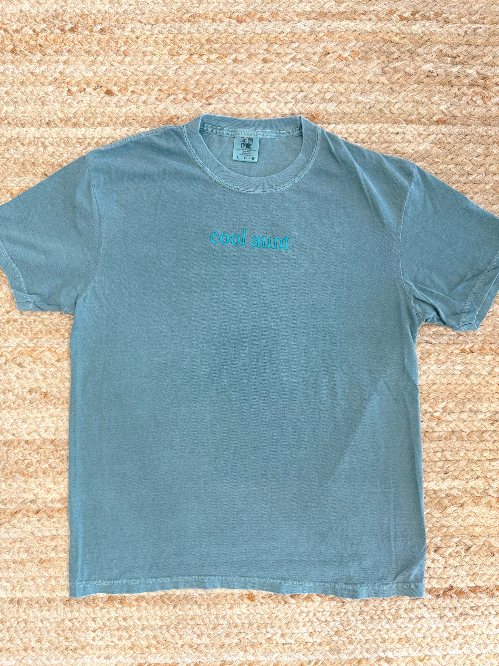 🤍For the aunt who shows up with iced coffee, good vibes, and fun energy — meet the Cool Aunt Tee. This relaxed-fit Comfort Colors short sleeve shirt in Blue Spruce features a chic, minimalist embroidered “Cool Aunt” design that says it all without trying too hard.