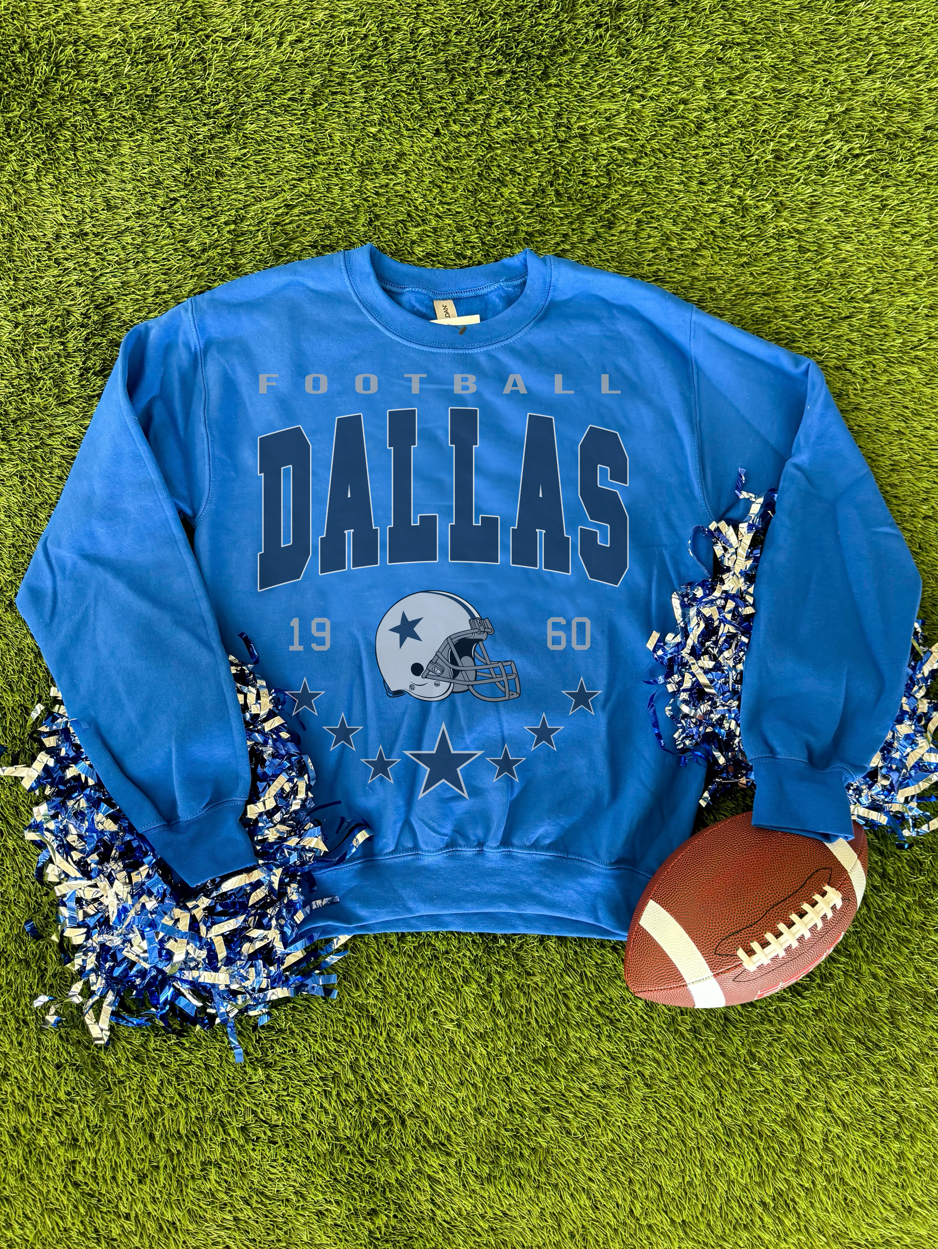 Football Dallas Helmet on Blue Gildan Sweatshirt