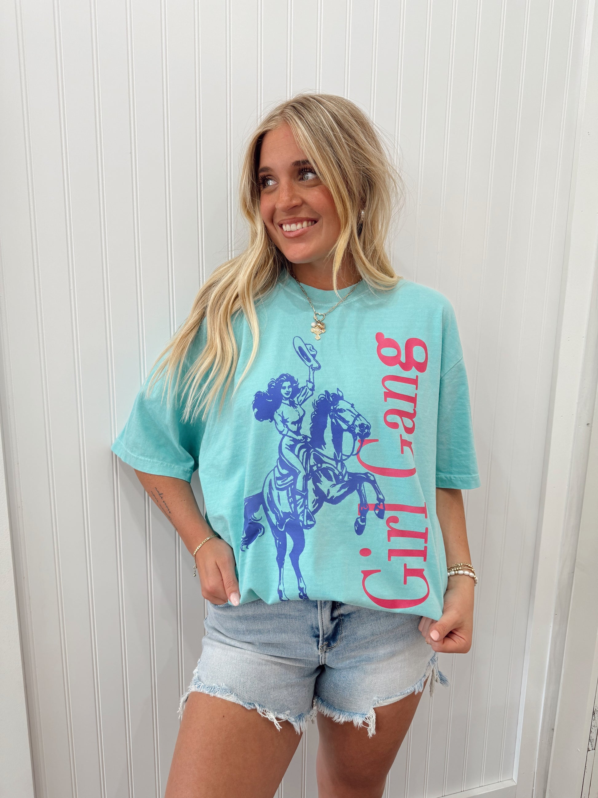 Saddle up for sunshine with our Girl Gang Tee, where bold Western vibes meet laid-back Southern charm! Printed on a Chalky Mint ultra-soft, 100% cotton Comfort Colors® Short Sleeve tee, this shirt bring you that vintage-washed, lived-in feel you love — in the brightest, happiest hues of the season.